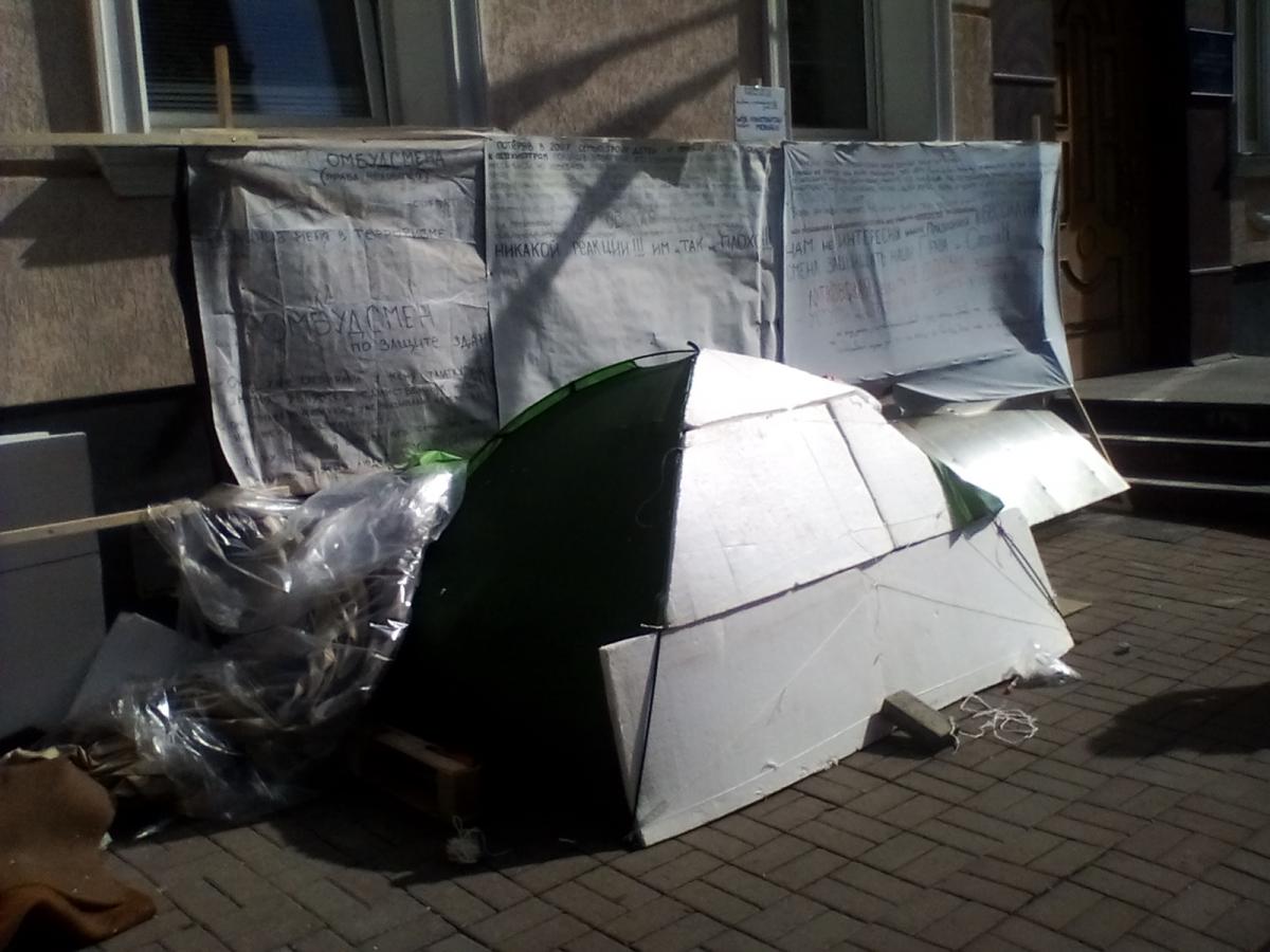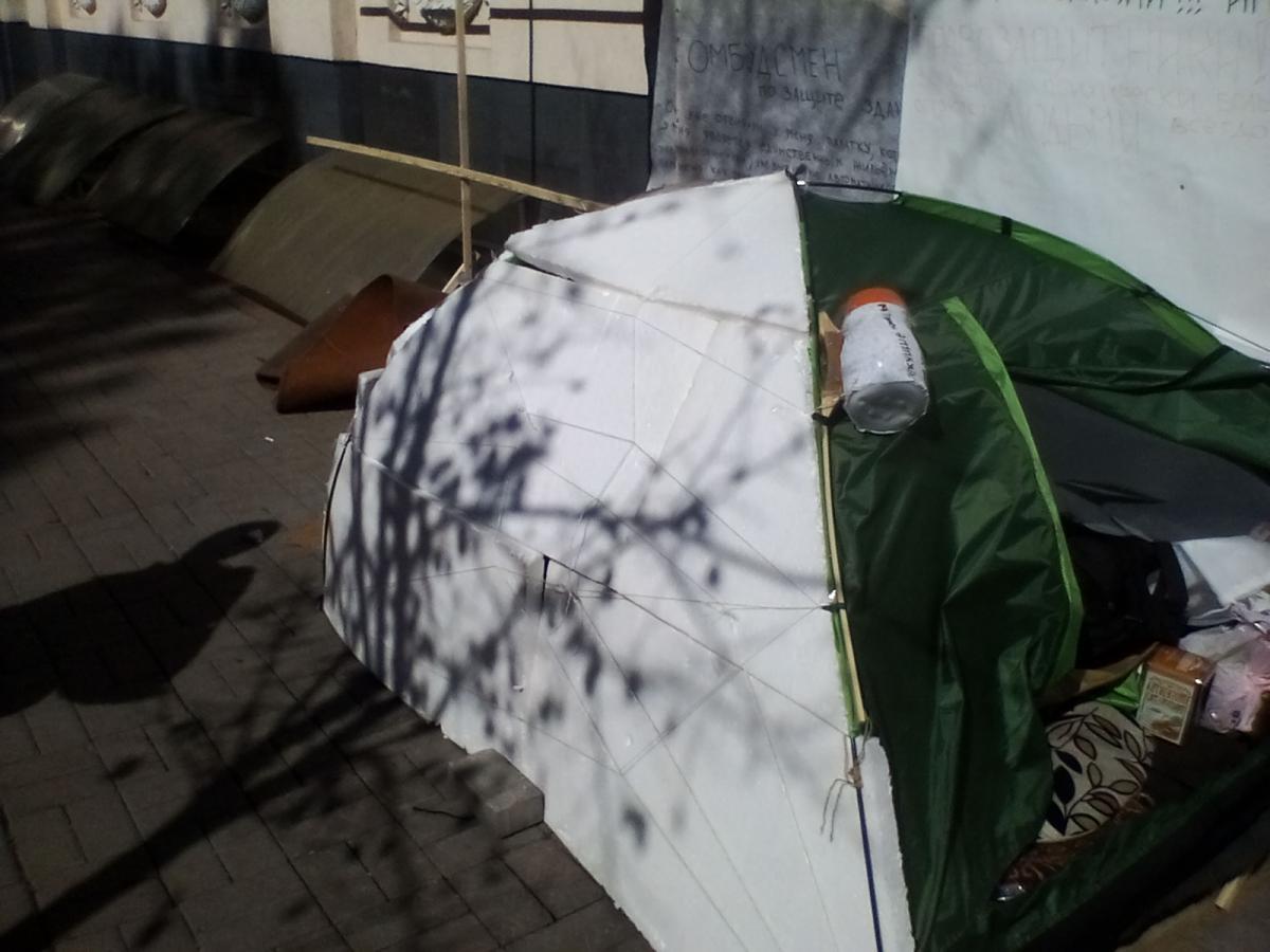 Утром решил пробежаться. По дороге нашел пять листов пенопласта. Хватило утеплить две стороны палатки.
