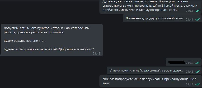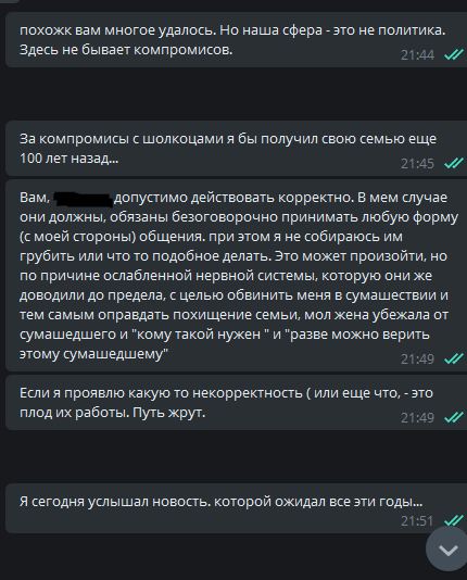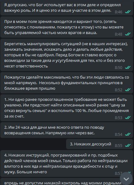 Со мной же эти люди так и не связались. Звонили с российского номера, похоже проверяли связь и телефон. Это после того как я настаивал на общении с родными в эту, сегодняшнюю, субботу по скайпу... как начало возрождения семьи... ни ответу ни привету и вот суббота уже прошла свою половину