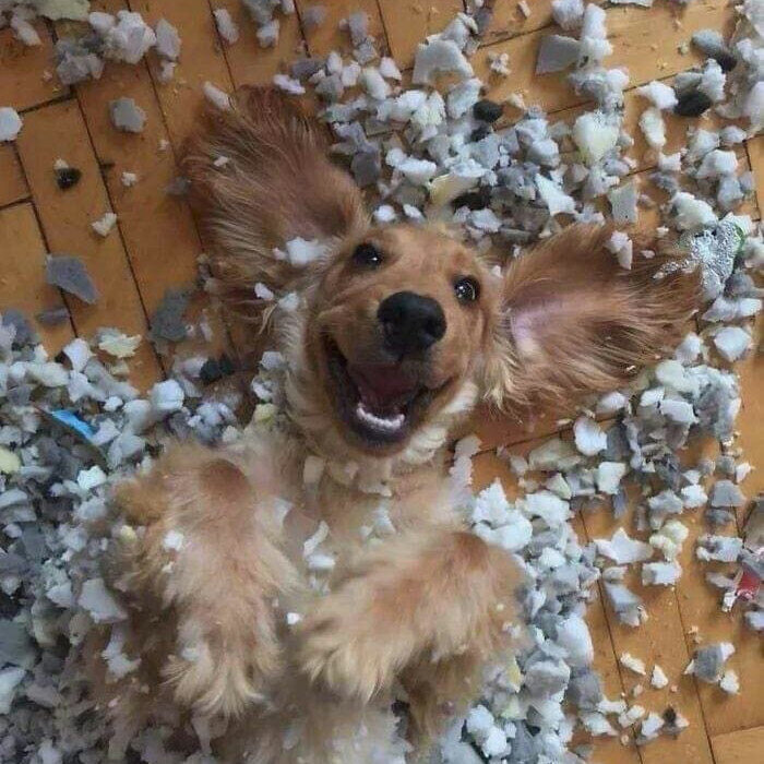 похоже, пёсик очень счастлив.))