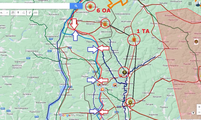 #UkraineRussianWar ⚡️Куп'янськ-Сватове. 1-я танковая и потешная 6-я армии орков получили приказ организовать "наступление",ибо роспропу уже нечем "кормить" население лаптестана. А тут такой простор для лапши. И мегаполис Новоселівське,и столица Куп'янськ. Не бздим. Верим в ВСУ!