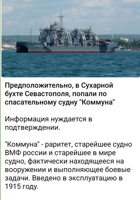 #UkraineRussianWar ⚡️Кратко по Коммуне. Судно носитель титановых глубоководных аппаратов проекта 1855 «Приз». Лодка тонет ,судно выходит в море , аппараты погружаются и пристыковываются к комингс-площадкам лодки и спасают экипаж. Нет Коммуны - возрастают риски потери экипажа.