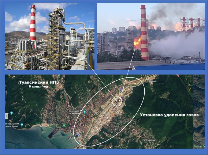 #UkraineRussianWar ⚡️Удар дронов также пришелся на Туапсинский НПЗ. В установку удаления газов при первичной очистке нефти. Не так критично , но это приведет к изменению производственных процессов на НПЗ.