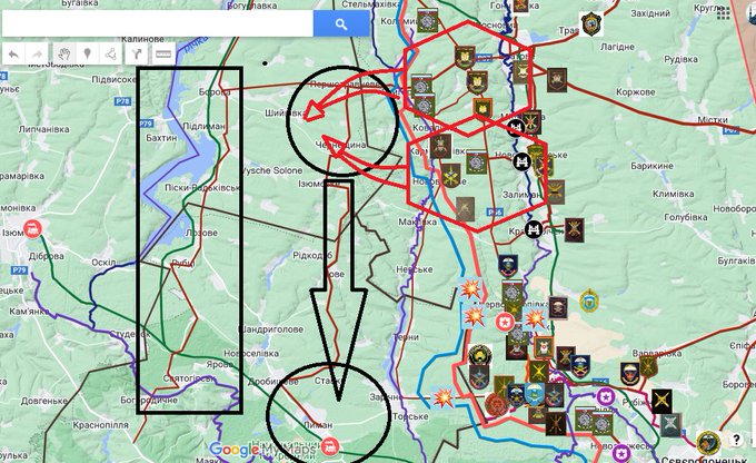 #UkraineRussianWar ⚡️Север. Две дивизии Север - 4 ТД ,усиленная "партизанами" и Юг - 3 МСД решили на сходящихся направлениях "ворваться" на высоту. Захватить рокадную дорогу,ведущую в Лиман и затем "спуститься" на юг. Все западнее будет простреливаться. Мечтать не вредно. ВСУ👍‼️