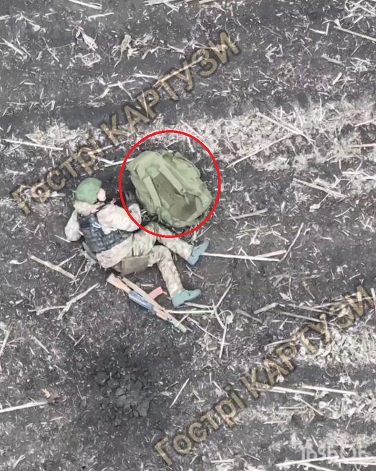 Хочу заметить, что в последние не просто дни или недели, а месяцы, доставка боекомплекта и провизии на передовые позиции у РОВ осуществляется именно таким способом. В ближней тыловой зоне с транспорта высаживаются носильщики и тащат это все несколько километров на себе, поскольку дроны системно уничтожают любую транспортную единицу.