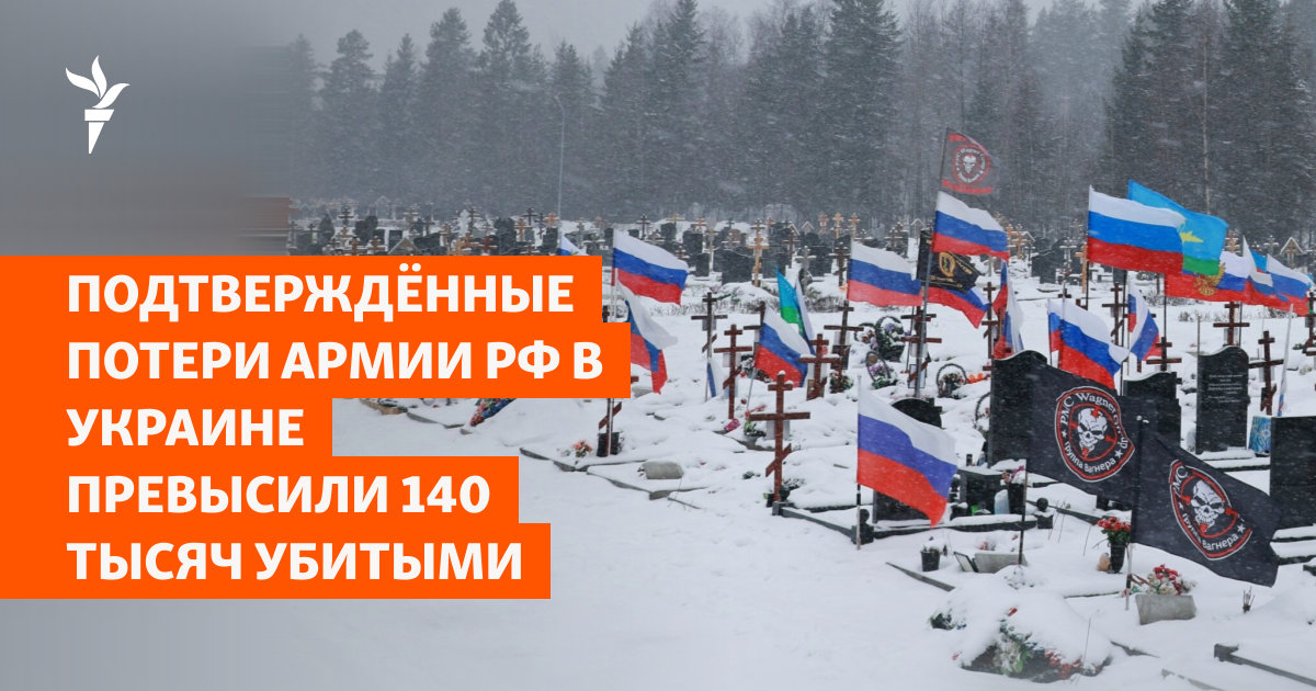"Известны имена более 140 тысяч российских военнослужащих, погибших на войне с Украиной. ... Речь идёт о тех, чьи имена были названы в официальных сообщениях или родственниками в соцсетях. Их на 24 октября 140 101 человек. Реальное число убитых оценивается как примерно в полтора раза большее, то есть превышает 200 тысяч."