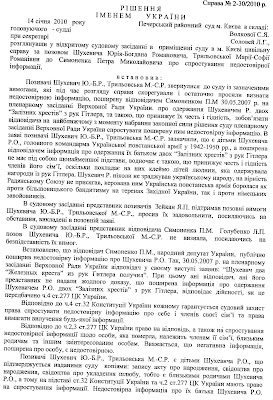 ІМЕНЕМ УКРАЇНИ. Позов дітей Головного командира УПА РОМАНА ШУХЕВИЧА до ПЕТРА СИМОНЕНКА задоволено.