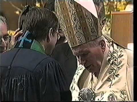 "Папа, ваше святейшество, ваш исторический визит в Сент Луис штата Миссури послужил катализатором в создании этой программы, и это превращает ваше присутствие в прочное наследие для нашего региона. Сегодня мы представляем вам, это воззвание, объявив о создании "Вера за стенами", ваша приверженность улучшению межрелигиозных отношений способствовало среде, в которой дух коллективной веры положительно может процветать. Кроме того, мы также Представляем Вас с этим знаменем, символом веры за стенами. Мы надеемся и молимся, что это вдохновит веру религиозных общин во всем мире. Чтобы сосредоточить их усилия на улучшение здоровья и качества жизни для всего человечества. Снова мы приветствуем вас в нашем регионе".