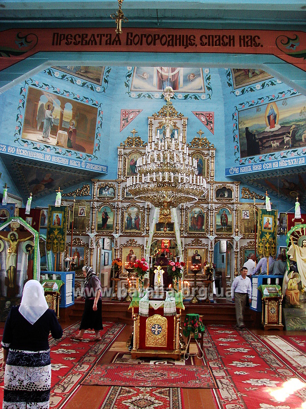 В Красном Лимане есть храм Петра и Павла это центральный храм района, в нем служит настоятелем и главным благочинным отец Владимир, он то и построил при своем храме небольшую крестильную церковь в честь своего небесного покровителя Святого равноапостольного великого князя Владимира, крестителя Земли Русской.Отец Владимир заказал иконостас в 2005 году, рекламой послужило работа в кафедральном соборе г. Изюма. И мы в тандеме с Хомяковым Сергеем Тихоновичем взялись за работу, в мои обязанности входил проект, прорисовка деталей в натуральную величину и золочение. Сергею достались резьба, рамы, основы иконостаса.Иконостас имеет 23 иконы. Стилизация резного орнамента под украинское барокко с характерными поворотами зазубренных листьев в разные стороны. Посредине царских врат крестообразная икона Благовещения, при открытии врат икона делится пополам на две равные части. На одной остается Дева Мария, на другой Архангел с лилией в руке. Иконы евангелистов обрамлены цветами, у врат вверху вынесен кокошник с цветами и крестиком. Нащельник врат выполнен в виде вьющихся листьев.Диаконские вратницы имеют ростовые иконы, обрамленные и украшенные прорезным кокошником, который находится в просвете между вратницей и аркой. Основные 4 панели иконостаса имеют по 2 иконы, обрамленные и украшенные резьбой, по сторонам малообъемные полуколонны с капителью. Полуколонны не имеют базы. Листья орнамента получают здесь боковое развитие внутрь и как бы поддерживают раму большой иконы, под карнизом сужающаяся к центру и к низу розетка из листьев с крестом посредине.Над вратницами справа и слева на карнизе установлены рамочки образованные листьями, во внутреннем пространстве которых установлены символы ветхого и нового заветов. Барочной формы верхний ярус иконостаса хорошо выделяется под алтарным сводом храма, на нем 3 иконы. Верхушка имеет мощный кокошник из закрученных листьев и больших цветов. Над карнизами боковых панелей барочные главки с небольшими круглыми иконами посредине. Карниз оперяется на скрученные в симу листья, сверху карниза кокошник. Иконостас увенчан 5 крестами: 3 по центру и 2 по бокам.К нам был приставлен заказчик, который стимулировал наш труд и мотался между Харьковом и Донецком, чем он занимался я не знаю, но желание быть причастным к прекрасному у него было.Комментарий