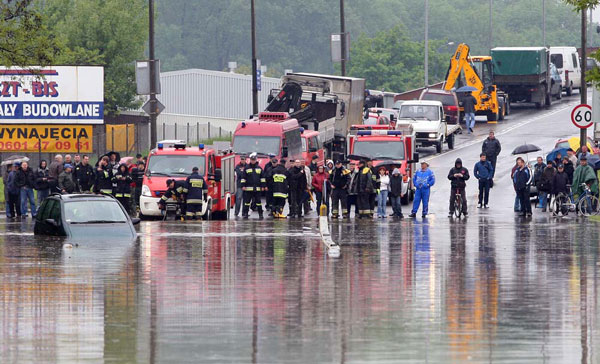 В польской столице из-за обильных осадков улицы превратились в реки. Затоплены главные дорожные развязки города, многие подвалы домов и гаражи. Вода просочилась в подземные помещения и коридоры Центрального вокзала, сообщает ИТАР-ТАСС.